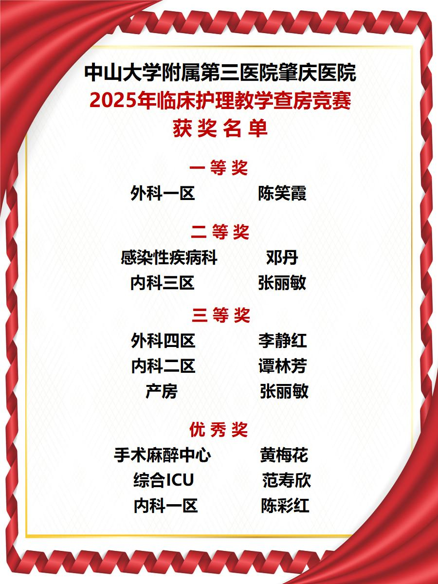 锤炼带教能力,夯实人才基础:中山大学附属第三医院肇庆医院2025年临床护理教学查房竞赛圆满落幕!