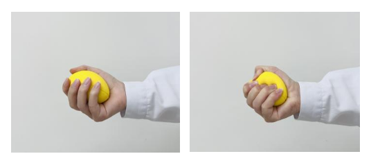 穿刺侧手捏握力球捏至原 1/2 大,紧捏10秒、放松10秒。每日3次,每次30个。可增强手部力量,促进血液循环。